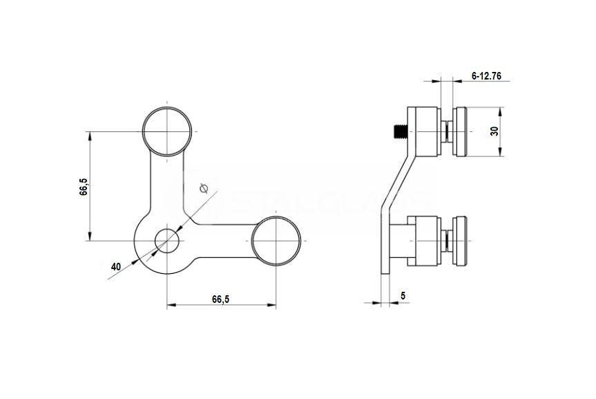 Uchwyt do szkła spider podwójny 90° AISI 304 – szlif – 6/12,76 mm