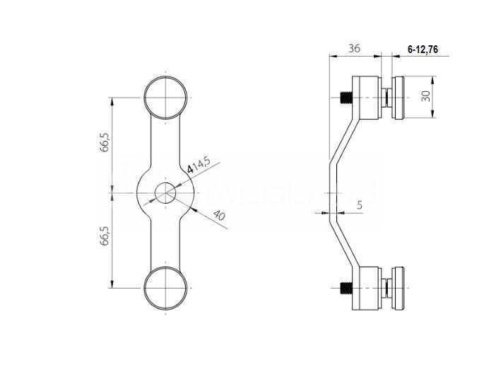 Podwójny uchwyt do szkła typu spider 180 stopni wykonany ze stali nierdzewnej AISI 304, o powierzchni matowej, szlifowanej. Element balustrady posiadający dwa ramienia,po przeciwległuch stronach na których końcach umieszczone są dwie rotule o średnicy 30mm . Uchwyt do szkła typu spider przeznaczony jest do szkła o grubości 6-12,76mm, grubość ramienia 5mm. Świetny jako element balustrady, gdzie wypełnieniem jest szkło, a także podczas montażu dachów szklanych.