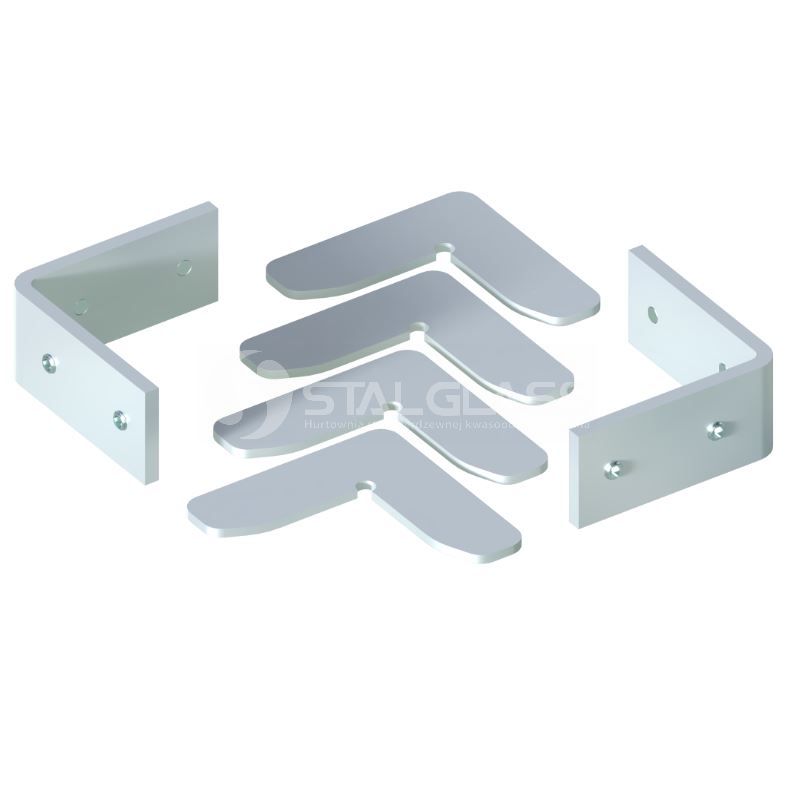 Zestaw kątowników do ościeżnicy – komplet wykonany ze stali nierdzewnej, zapewniający stabilne i trwałe połączenie elementów ościeżnicy aluminiowej typu H, idealny do jednolitego montażu systemów ścian szklanych.